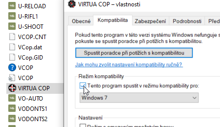 Dále doporučuji několik univerzálních rad - Extrahujte složku se hrou přímo do adresáře C:/. Rozklikněte vlastnosti u spouštěcího souboru (.exe) a přejděte do záložky kompatibilita. Zkuste si pohrát s režimem kompatibility (Win 95, XP, 7), režimem barev, spuštění v rozlišení 640x480 nebo spouštění programu jako správce. Je dost možné, že problém vyřeší některá z kombinací.